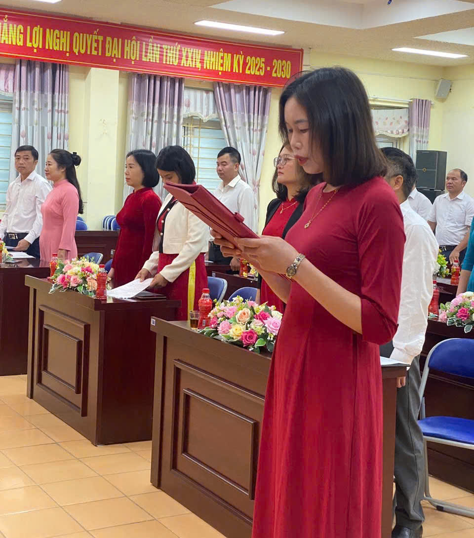 Trước cờ Tổ quốc, cờ Đảng và sự chứng kiến của toàn thể Chi bộ, đồng chí Vàng Thị Ngừn đã đọc lời tuyên thệ, cam kết: Tuyệt đối trung thành với mục tiêu, lý tưởng của Đảng; không ngừng rèn luyện phẩm chất chính trị, đạo đức cách mạng; phấn đấu hoàn thành xuất sắc nhiệm vụ được giao, góp phần xây dựng tổ chức Đảng ngày càng mạnh và đồng chí bày tỏ lòng biết ơn sâu sắc đến Chi bộ và tập thể đồng nghiệp, khẳng định rằng việc trở thành đảng viên là vinh dự lớn lao, đồng thời là động lực để tiếp tục cống hiến.