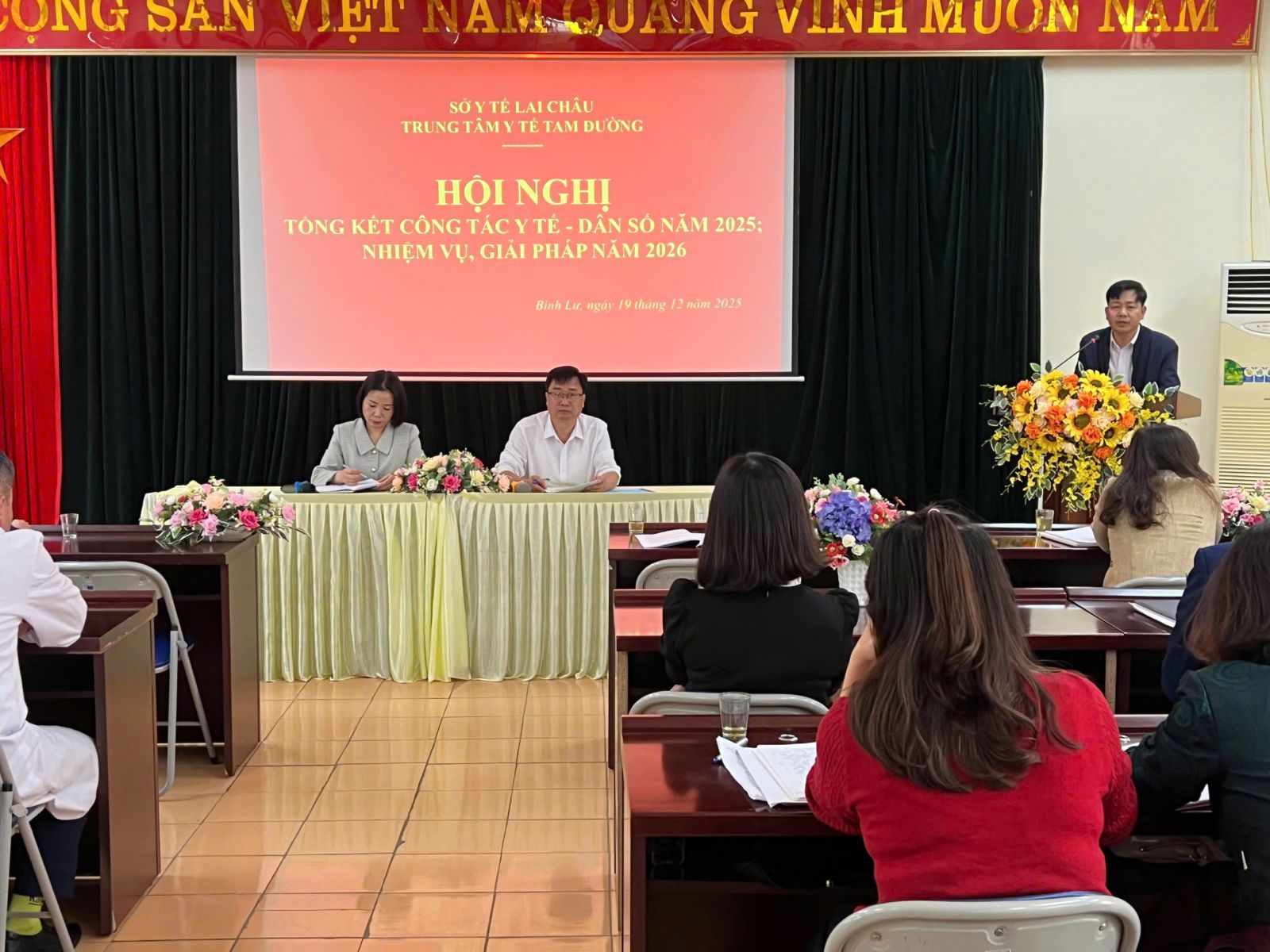 Chiều ngày 19/12, Trung tâm Y tế Tam Đường tổ chức Hội nghị tổng kết công tác Y tế – Dân số năm 2025, triển khai phương hướng, nhiệm vụ trọng tâm năm 2026. Chủ trì hội nghị BS CKII Đặng Hữu Ngọc – Bí thư Đảng bộ, Giám đốc Trung tâm Y tế Tam Đường, các đồng chí Ban Giám đốc, lãnh đạo các Khoa, Phòng chức năng và Trưởng/Phó Trạm Y tế các xã trực thuộc.